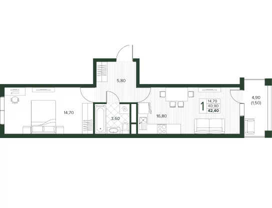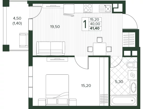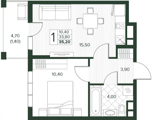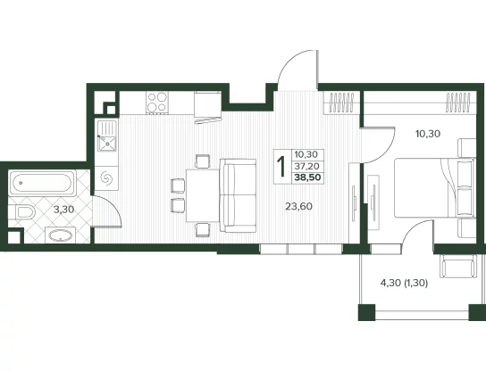 Площадь от 34 м2