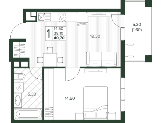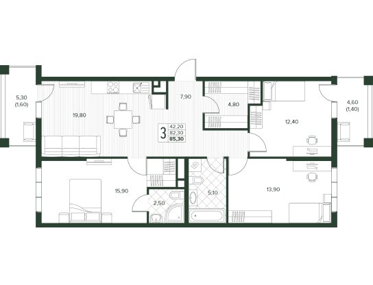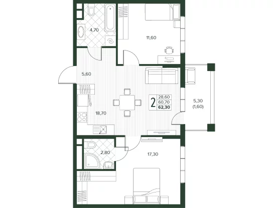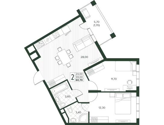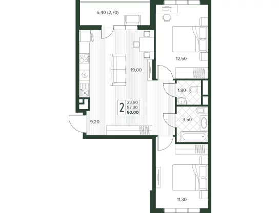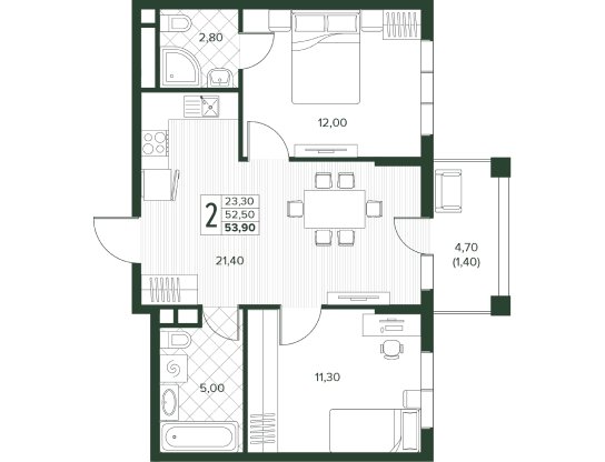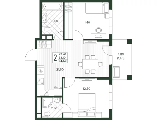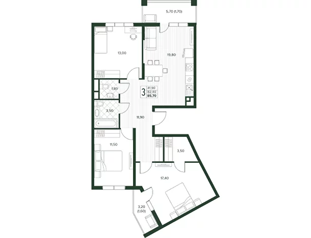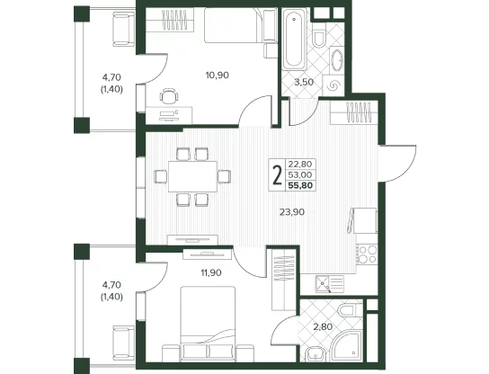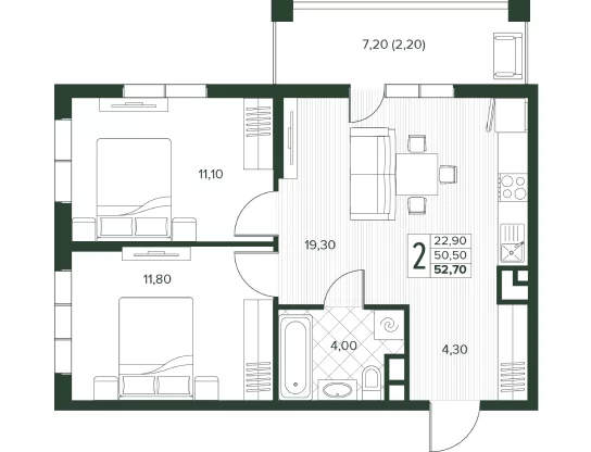 Площадь от 52.7 м2