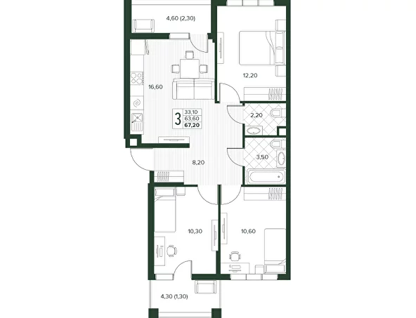 Площадь от 67.2 м2